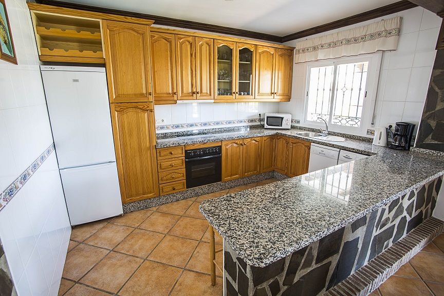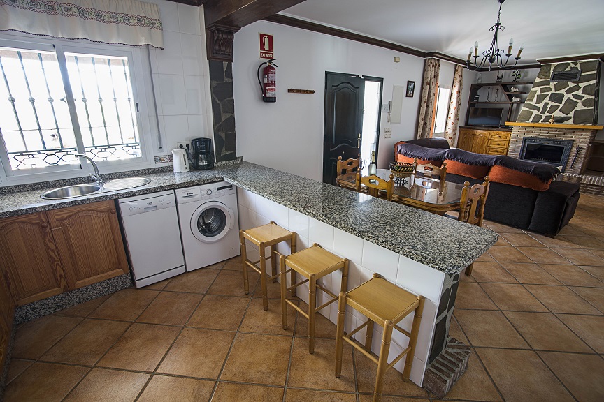 Cocina completamente equipada: horno, vitrocerámica, microondas, tostadora, exprimidor de zumos, batidora, cafetera, nevera, hervidor de agua, lavadora y lavavajillas.